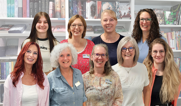 Bestärkt wurde Günther darin durch einen Erfahrungsaustausch bei "Buch & Co." bei Zeitfracht: "Den Erfolg einer Veranstaltung sollte man nicht an der Zahl der verkauften Bücher ablesen, sondern an der 'Customer Experience', der Intensität der Kundenbindung", so Günther. Und das bedeutet für das Team, auch mal selbst die Yogamatte hinter dem Novitätentisch auszurollen, sich am örtlichen Vereinsabend mit einem Spieleangebot oder mit dem Service am Zapfhahn zu beteiligen. "Smart verkaufen", hat Claudia Günther während eines Lehrgangs erfahren, bedeutet: eine Community aufzubauen, "Leute ums Lagerfeuer zu scharen". Und das schafft die Buchhandlung auf vielen Wegen: die Auszubildende und eine Kollegin bespielen zwei große Young-Adult-Regale, in denen Farbschnitt-Ausgaben leuchten, über Instagram werden Follower über Neues in der Buchhandlung informiert, der WhatsApp-Status zeigt täglich Neues aus dem Laden. "Wir freuen uns sehr über die Auszeichnung mit dem Deutschen Buchhandlungspreis", so Günther. "Seit unserer ersten Bewerbung hat sich viel getan, inzwischen rühren wir in vielen Töpfen!"