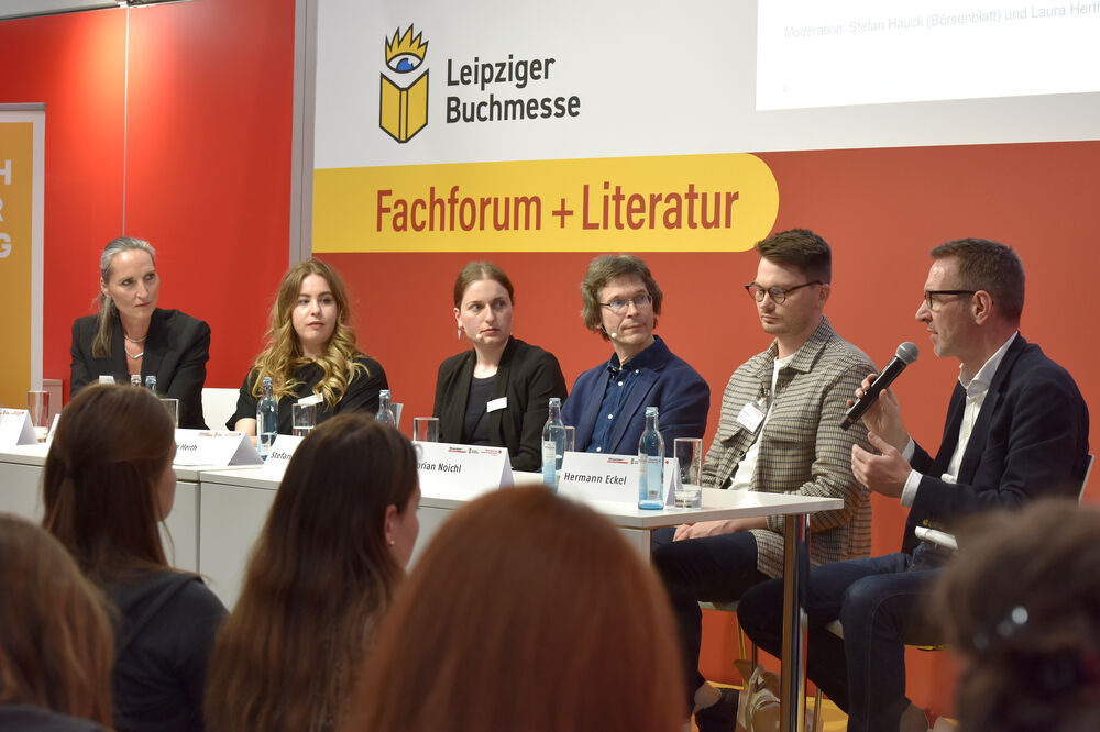 Die thematische Bandbreite der von Laura Herth, Leiterin der Abteilung Berufsbildung im Börsenverein, und Börsenblatt-Redakteur Stefan Hauck zusammengestellten sieben Podiumsrunden in Halle 5 war ebenso groß wie die Vielfalt der Berufe von 26 Expert:innen, die sehr offen über ihren Arbeitsalltag, ihre schönen aber auch nervigen Momente erzählten. Die Zuschauer:innen erfuhren am Buchmesse-Freitag über ganz unterschiedliche Wege und Ausbildungen und bekamen Tipps zu Bewerbungen und Berufseinstieg.