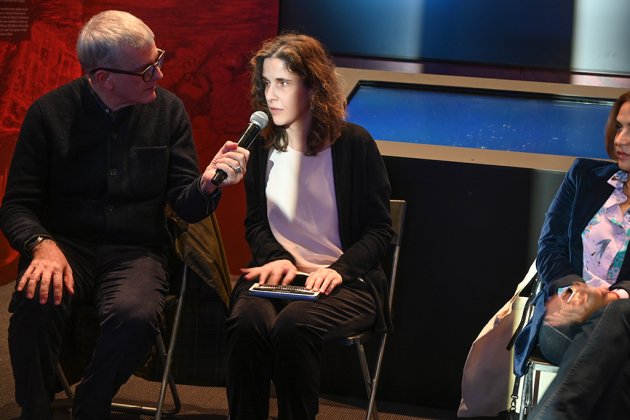 Lesung mit Braille-Schrift: Clara Ori liest im Ehrengastbereich vor.