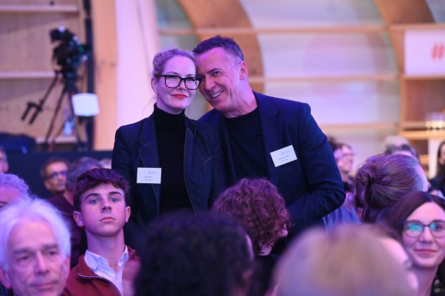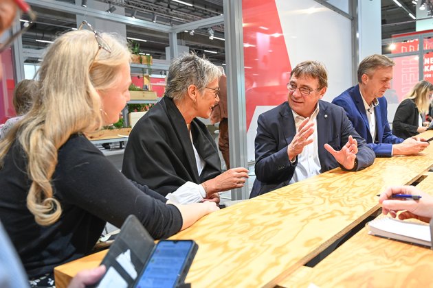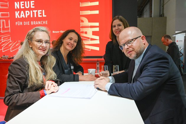 Carsten Brosda, Senator für Kultur und Medien der Hansestadt Hamburg, und Antje Flemming, baldige Leiterin des Literaturhauses Hamburg, im Gespräch mit Peter Kraus vom Cleff und Birgit Reuß vom Berliner Büro.