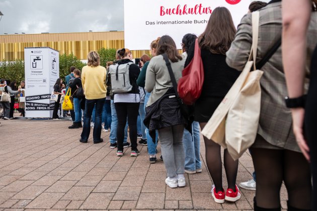 Die Buchmesse sorgte mit kostenfreiem Wasser dafür, dass die in der Schlange anstehenden lesehungrigen Literaturfans nicht auch noch Durst bekamen.