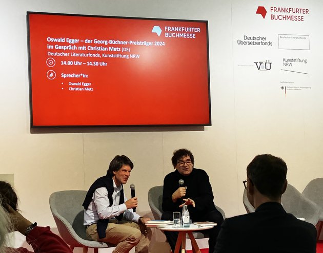 Das Zentrum Wort, als Veranstaltungsbühne vom Deutschen Literaturfonds, Übersetzerfonds und weiteren Partnern organisiert, rückt das intellektuelle Buchmesseerlebnis in den Mittelpunkt. Büchner-Preisträger Oswald Egger spricht mit Literaturwissenschaftler Christian Metz über seine Literatur. „Das nächste Wort ist immer das schwerste“, so Egger, der zugab, „viel Zeit mit der Arbeit an Wörtern und Silben“ zu verbringen, um sie zu „Verstehensherden“ zu kombinieren. „Eigentlich male ich den Text“.