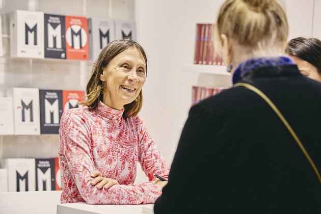 Martina Hefter, mit dem Deutschen Buchpreis ausgezeichnet, absolvierte den Gesprächsmarathon zu ihrem Buch „Hey, guten Morgen, wie geht es Dir“ gut gelaunt und genoss offensichtlich die Begegnungen mit Leser:innen.
