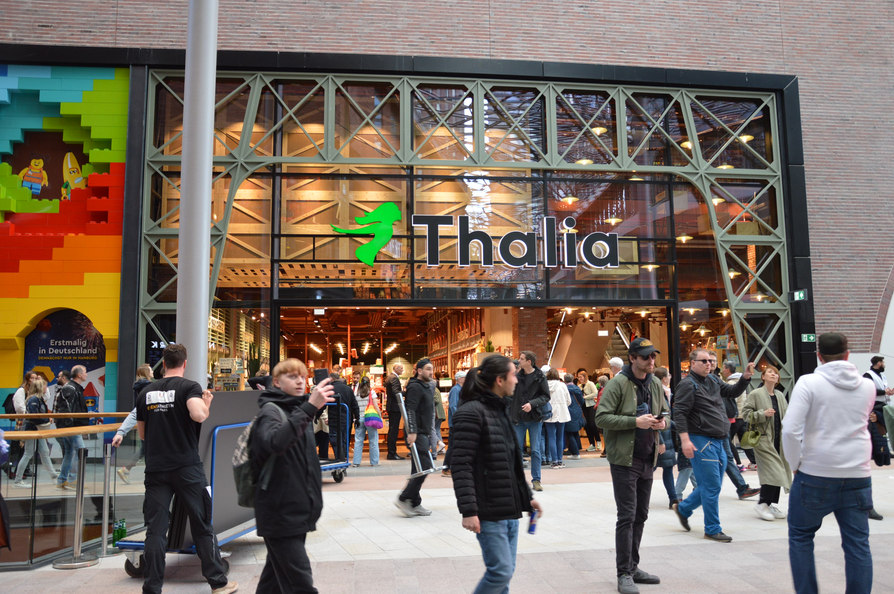 Das Ambiente im Thalia Überseequartier spiegelt die Besonderheiten der HafenCity wider. Schon von außen fällt die Fassade mit Kran-Optik ins Auge. Das barrierefreie Innere ist an das Erscheinungsbild der historischen Speicherstadt angelehnt, mit kupferfarbenen Regalen und Flächen, die an Container erinnern. Im Erdgeschoss locken ein großer Jugendbuchbereich, Manga, Young und New Adult, Fantasy und englischsprachigen Bücher ebenso wie Titel mit Bezug zu Hamburg, aktuelle Romane, Krimis und Sachbücher. Trendige Nonbooks sowie Spielwaren und Spiele ergänzen das Sortiment. Neben dem Kassen- und Abholtresen gibt es auf beiden Etagen SB-Kassen sowie im Außenbereich eine rund um die Uhr zugängliche Click & Collect-Abholstation.