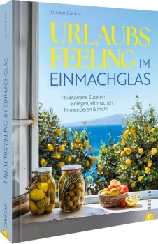 Mit diesem Kochbuch von Susann Kreihe lässt sich der Urlaub verlängern. Oliventapenade, Salzzitronen, Granatapfelhonig – mehr als 80 Rezepte zum Einmachen, Einlegen, Trocknen und Fermentieren fangen Genüsse rund ums Mittelmeer ein.