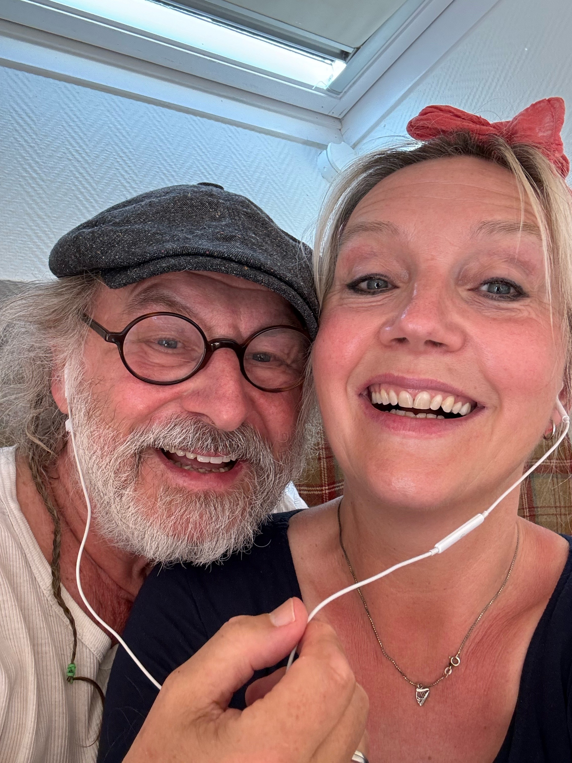 Selfie: Klaus-Peter Wolf und Bettina Göschl mit Headset