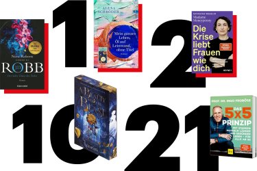 20 Premieren zeigen sich diesmal in den Wochencharts, darunter zwei sofort auf Platz 1: Alena Schröder mit dem Abschluss ihrer Familien-Trilogie und J.D. Robb (aka Nora Roberts) mit dem 50. Band ihrer futuristischen Eve-Dallas-Krimireihe. Neu in der Ratgeber-Liste ist Ingo Froböse mit Fitness-Tipps für Ältere, "Madame Moneypenny" beginnt beim Sachbuch auf dem Podium.