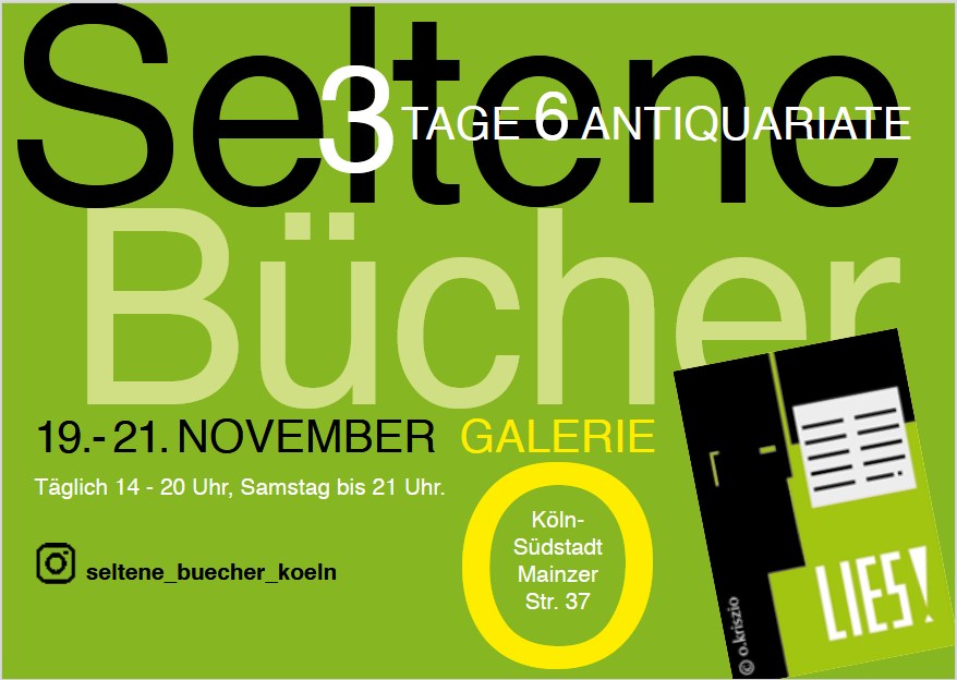 Vom 19. bis 21. November findet in der Kölner Südstadt (Mainzer Straße 37) ein kleiner Antiquariatstag mit sechs Teilnehmer*innen statt.
