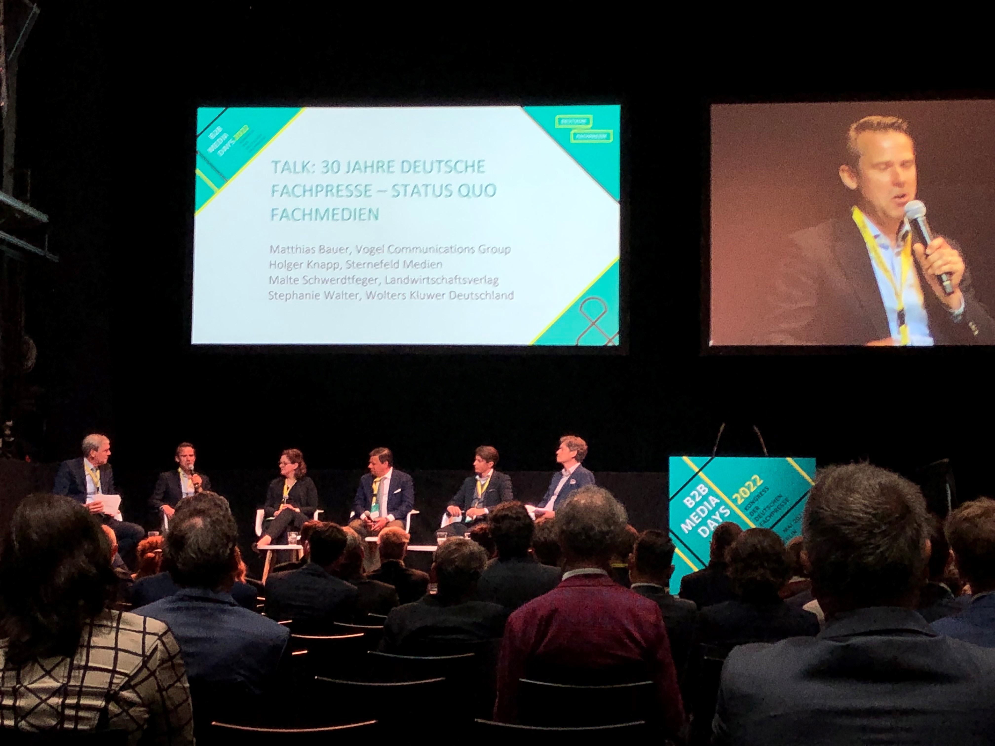 Malte Schwerdtfeger, Geschäftsführer des Landwirtschaftsverlags In Münster, sagte in der von Bernd Adam (Geschäftsführer Deutsche Fachpresse) und Torsten Casimir (Chefredakteur Börsenblatt) moderierten Runde: "Es geht uns gut, aber die Herausforderungen nach Corona sind größer als während der Pandemie. Die Art zu arbeiten hat sich verändert, und bei der Digitalisierung haben wir einen großen Schritt nach vorn gemacht."