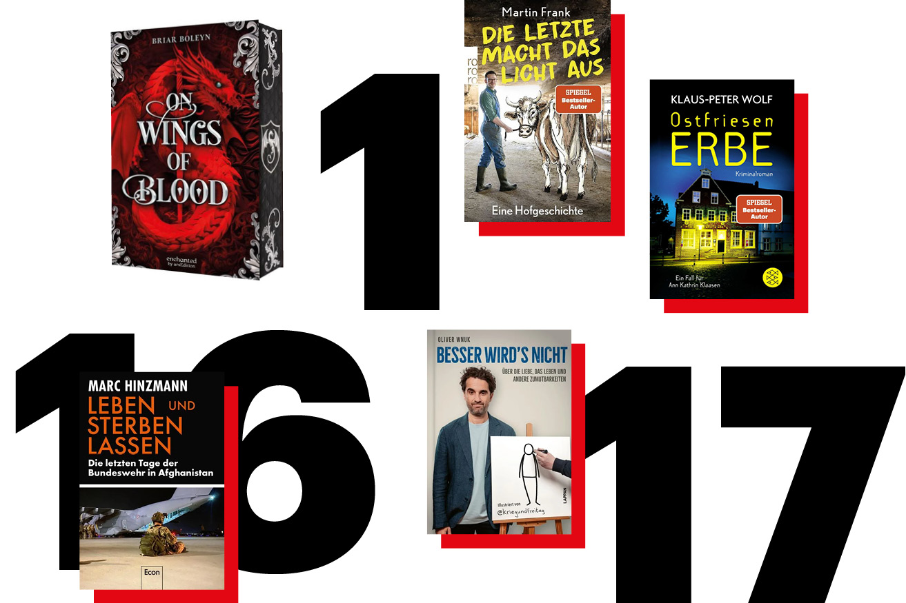 Das Erotiklevel gibt der Verlag mit "super spicy" an: "On Wings of Blood" (arsEdition; ET: 26. Januar; Ü: Ina Streich und Sarah Johnsen) ist der Auftakt der Romantasy-Reihe "Bloodwing Academy" von Briar Boleyn – und startet sofort auf Platz 1 bei der Belletristik Hardcover. Für Fans von Enemies-to-Lovers, Morally Gray Villains und Dark Academia. Mit limitiertem Farbschnitt. Zum Inhalt: Medra Pendragon, die letzte Drachenreiterin ihrer Welt, wird an die Bloodwing Academy verschleppt, wo mächtige Vampire regieren. Ein düsteres Schloss mit noch düstereren Geheimnissen und tödlichen Wettkämpfen. Und dann ist da noch Blake Drakharrow, ein ebenso arroganter wie gutaussehender Vampir, verrät der Klappentext.