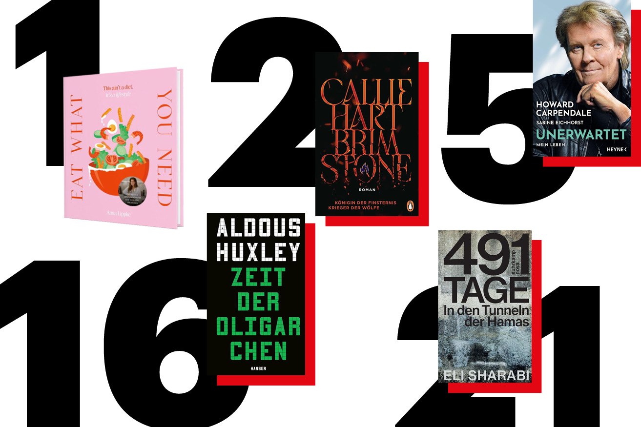 Im Januar feiert Howard Carpendale seinen 80. Geburtstag, die frisch erschienene Autobiografie des Schlagerstars ist höchstplatzierte Premiere beim Sachbuch. Bei der Belletristik ergattert Callie Hart mit "Brimstone" sofort einen Podiumsplatz – auch international ist die Dark Romantasy ein großer Erfolg. Ein wiederentdeckter, 80 Jahre alter Essay von Aldous Huxley trifft den Nerv der Zeit. Platz 1 springt für Anna Lippke mit "Eat what you need" bei den Ratgebern heraus.