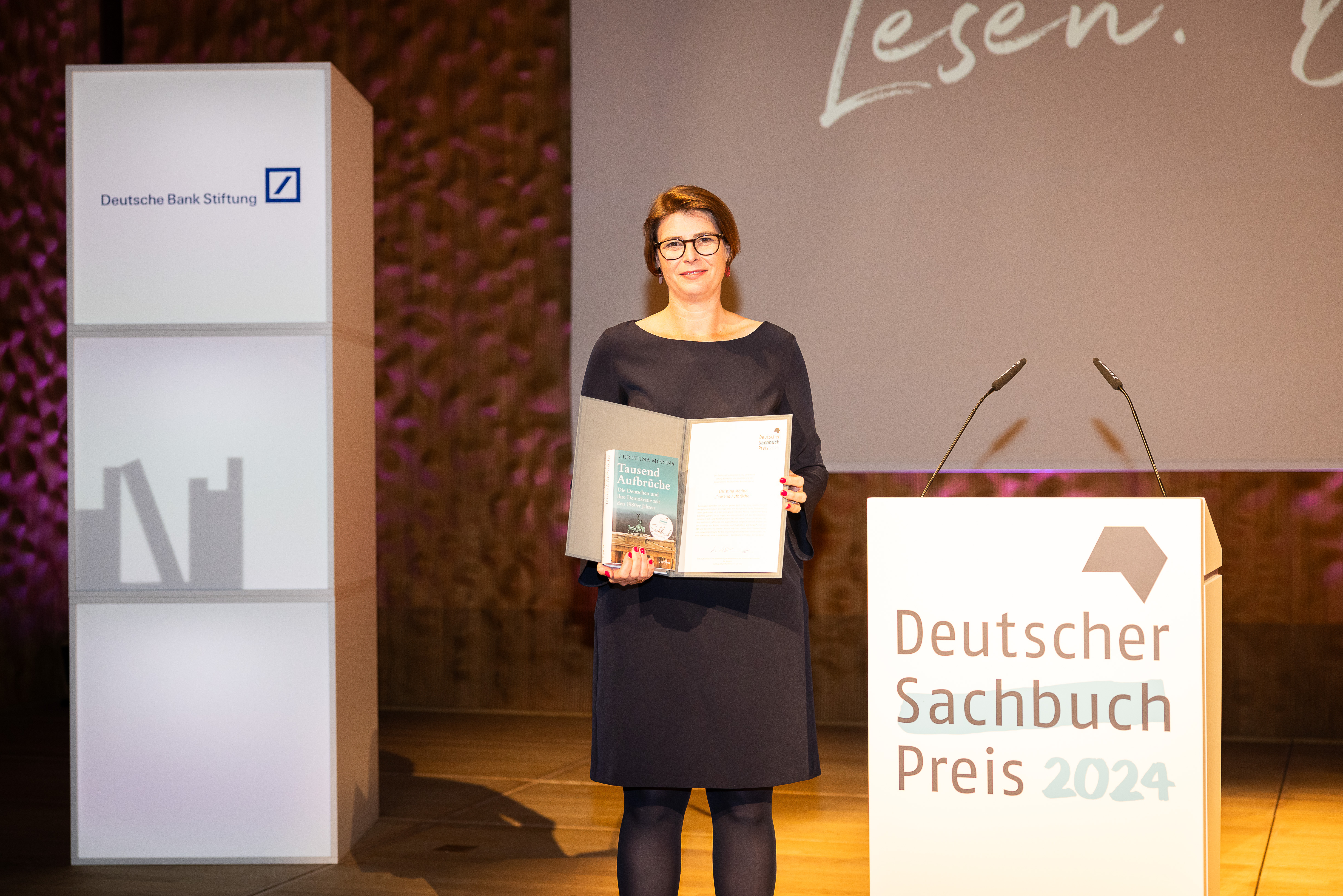 Die diesjährige Sachbuchpreisträgerin Christina Morina stellt ihren prämierten Titel "Tausend Aufbrüche" am 8. Juli 2024 um 19 Uhr in den Zwillingstürmen der Deutschen Bank in Frankfurt vor. Denis Scheck wird den Abend moderieren.