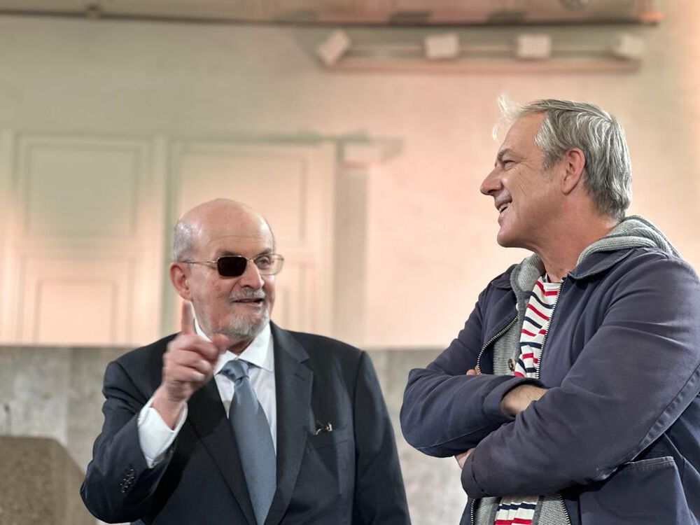 Am nächsten Tag bei der Generalprobe fliegt Salman Rushdie in die Herzen der ZDF-Mitarbeiter:innen. Sie sind von seinem Charme und seinem Witz begeistert. Beim Lesen seiner Dankesrede stellt er fest, dass die Schriftgröße zu klein ist. Ich verspreche ihm einen neuen Ausdruck. Immer und immer wieder proben wir mit ihm verschiedene Szenen, die für die Verleihung wichtig sind, bis mich der für die Übertragung verantwortliche Redakteur zur Seite nimmt. Es gebe Hinweise, dass am Sonntagmorgen die Bodenoffensive der israelischen Armee in den Gazastreifen beginnen könnte. Man wisse noch nichts Genaues, plane Sondersendungen, halte aber an der Live-Übertragung des Friedenspreises auf jeden Fall fest.