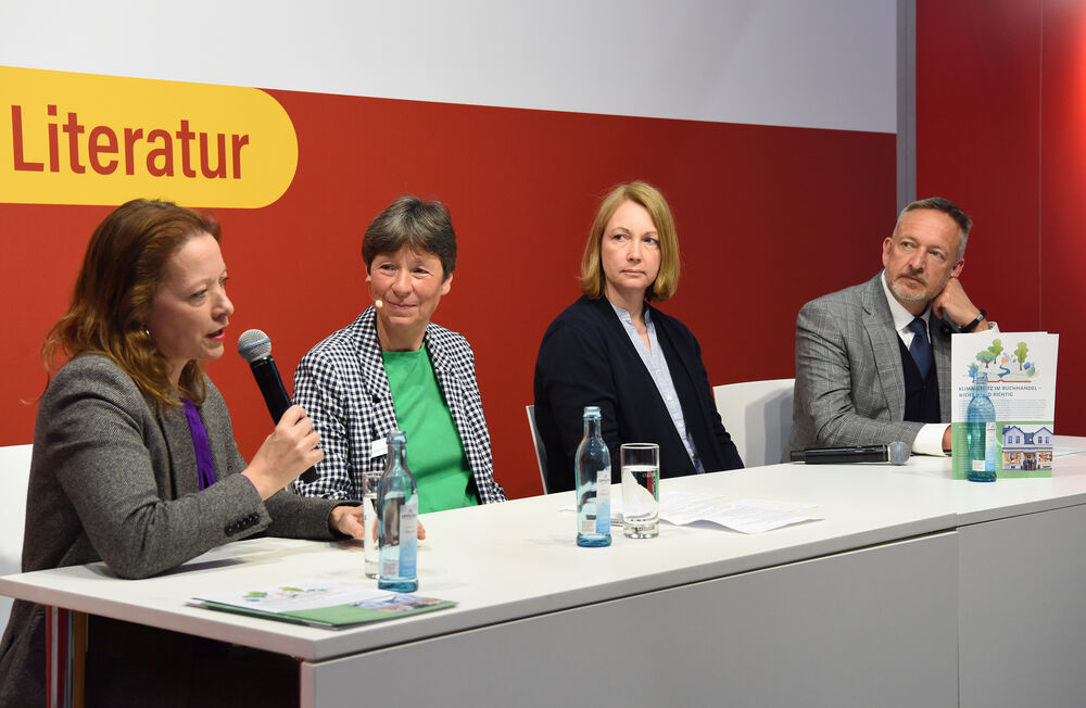 Mit Sonia López Sánchez, Consumer Panel Services GfK, Barbara Thieme, avj, und Peter Kraus vom Cleff, Hauptgeschäftsführer des Börsenvereins.