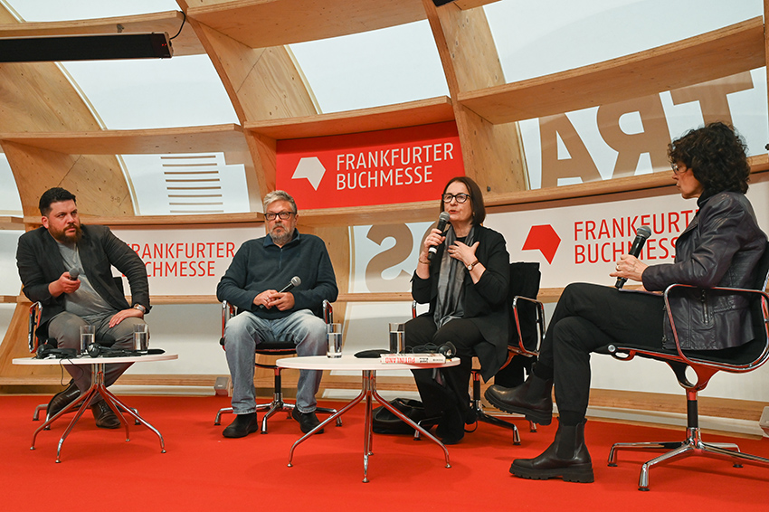 Auf dem Podium saßen die Historikerin Irina Scherbakowa, die dieses Jahr für ihre Arbeit in der Organisation Memorial mit dem Friedensnobelpreis ausgezeichnet wurde, und die Autoren Michail Schischkin und Leonid Wolkow („Putinland“, Droemer Knaur).