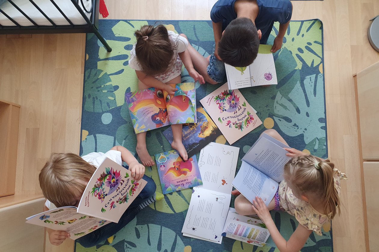 Es ist ein bemerkenswertes Projekt: Buchpakete mit 5 Titeln werden geschnürt, alle Bücher können in zwei Sprachen gelesen und angehört werden. Die Hörbücher wurden von Schauspieler:innen eingesprochen. Zusätzlich wurde eine App programmiert, über die die Familienmitglieder, die in der Ukraine geblieben sind und bleiben mussten, die Bücher einlesen können. So bleiben die Familien – auch über das gemeinsame Vorlesen – verbunden. Die Verlage Gerstenberg, Atlantis, Ellermann und Südpol sind für die deutschsprachigen Länder Partner des Projekts.