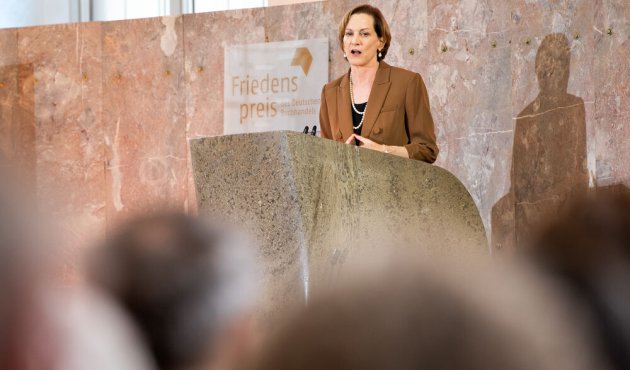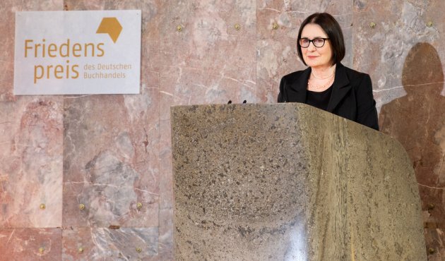 Die Aufgabe, gegen Russland und andere Autokratien aufzustehen, ist für die Friedenspreisträgerin aber keineswegs nur rein militärischer Natur: Die stärksten Waffen im Kampf gegen die Diktatur seien „unsere Grundsätze, unsere Ideale und die Bündnisse, die wir um sie herum aufgebaut haben“, betonte die Friedenspreisträgerin, die vom Paulskirchen-Publikum mit „Standing Ovations“ bedacht wurde.