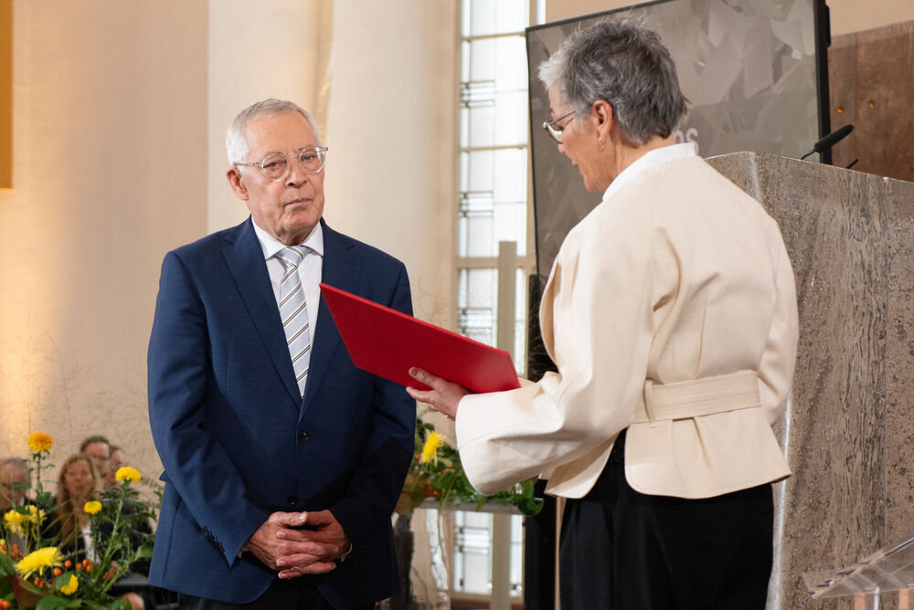Friedenspreisträger Karl Schlögel und Börsenvereinsvorsteherin Karin Schmidt-Friderichs