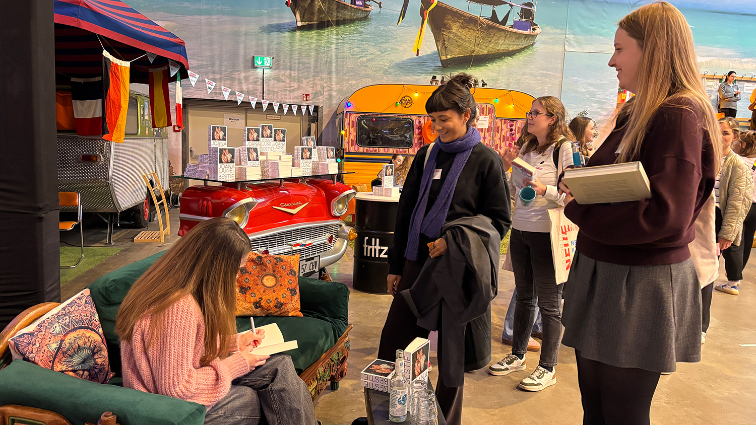 Josie Nettersheim und Lea Küpper, Thalia Bonn: "Die Location ist toll gewählt! Für jeden ist etwas dabei, und man lernt die Buchwelt außerhalb des Ladens kennen. Man kommt gut ins Gespräch und erhält viele coole Einblicke. Das Angebot ist breit gefächert. Ich bin einfach begeistert! Außerdem lernt man sich untereinander kennen und kann sich vernetzen."