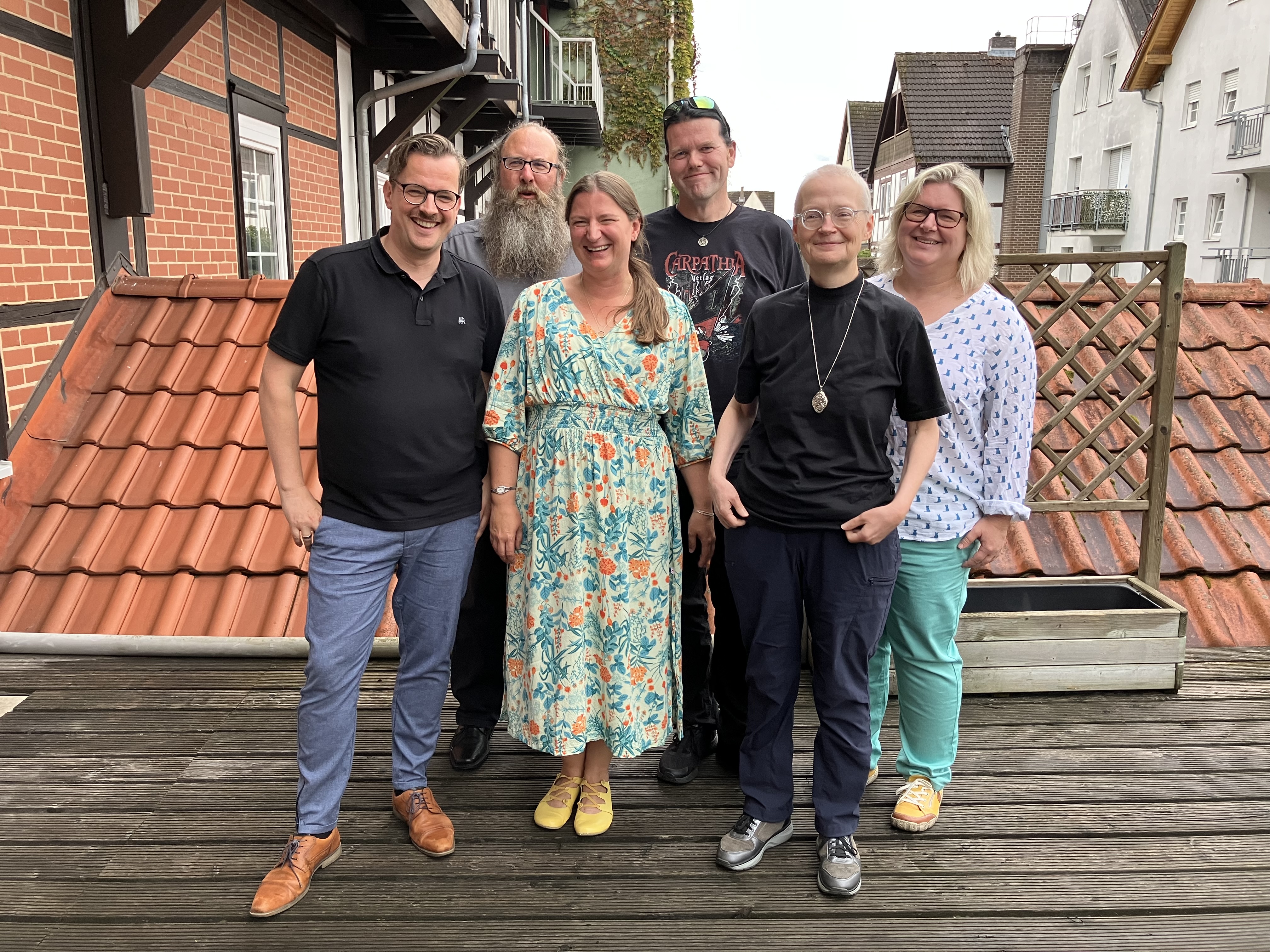 Auf der IGUV-Jahrestagung standen Wahlen an: Neue Sprecher:innen sind (vordere Reihe): Jens Korch (links), Steffi Bieber-Geske (zweite von links; wiedergewählt) und Jeannette Bauroth (rechts). Nicht mehr angetreten zur Wahl waren Björn Bedey (hinten links), Robert S. Plaul und Karin Timme (vordere Reihe, zweite von rechts)