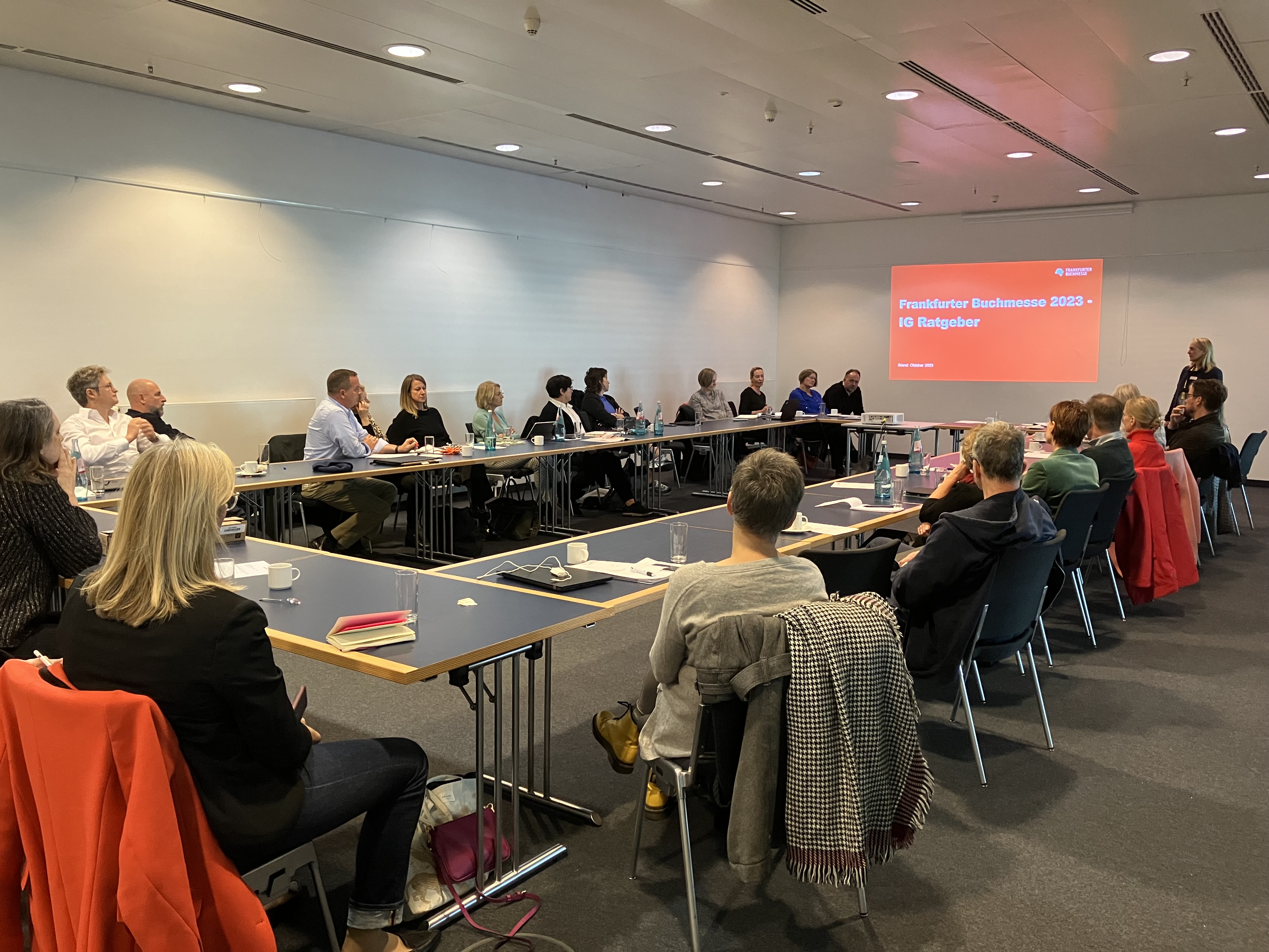 Auf der Agenda der IG Ratgeber stand auch die Frankfurter Buchmesse selbst. In diesem Jahr sind die Ratgeberverlage zum zweiten Mal mit einem Gemeinschaftsstand vertreten – allerdings in Halle 3.1 und nicht am Wunschstandort in Halle 3.0, wo auch die Stände der großen Ratgeberverlage beheimatet sind.