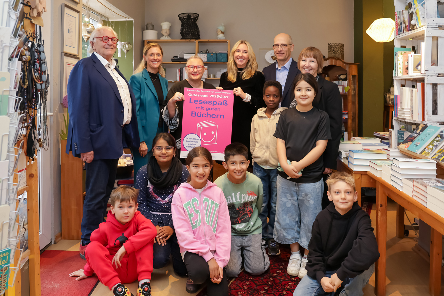 Leseförderung brauche starke Partner an der Seite, hob Kultusministerin Anna Stolz hervor: "Lesen ist der Schlüssel für Bildung und Persönlichkeitsentwicklung. Wer früh liest, trainiert Vorstellungskraft, Ausdrucksfähigkeit und kritisches Denken. Dazu leisten Buchhandlungen einen ganz besonders wertvollen Beitrag. Mit ansprechend gestalteten Erst-Lese-Tüten für die Kleinen und spannenden Veranstaltungen im KinderLeseClub weckt die Buchhandlung 'ErLesen' bei Kindern und Jugendlichen die Neugier und Lust am Lesen. Gemeinsam mit Schule und Eltern bilden unsere Buchhandlungen ein unschlagbares Team im Bereich Leseförderung – dafür danke ich allen Beteiligten und gratuliere zur wiederholten Auszeichnung mit dem 'Gütesiegel'!"