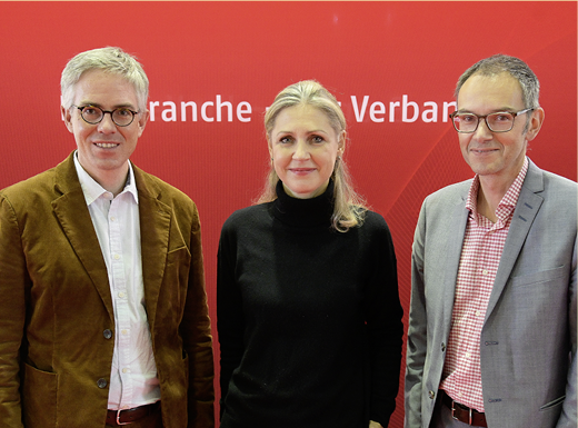 Das Sprecher-Trio der IG Belletristik und Sachbuch: Jonathan Beck (C. H. Beck), Constanze Neumann (bis Ende Januar Aufbau) und Andreas Rötzer (Matthes & Seitz)