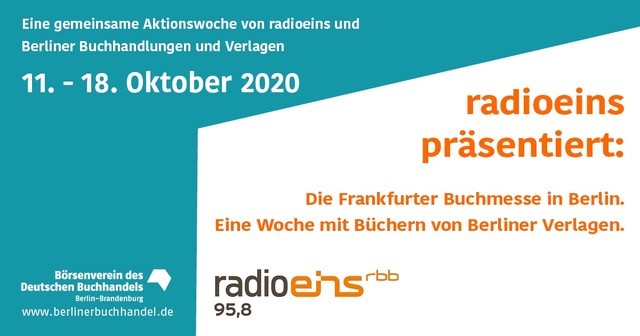 radioeins wird uns Anfang Oktober eine Bücherliste zur Verfügung stellen, welche Titel in der Aktionswoche in den verschiedenen Sendungen besprochen werden. „Diese Liste kann für Ihren Büchertisch eine gute Orientierung geben. Aber sie ist keineswegs abschließend – jederzeit können Sie ergänzen, vielleicht um Titel aus dem Verlag, den Sie während der Aktionswoche einladen?“, empfielt der Landesverband Berlin-Brandenburg.