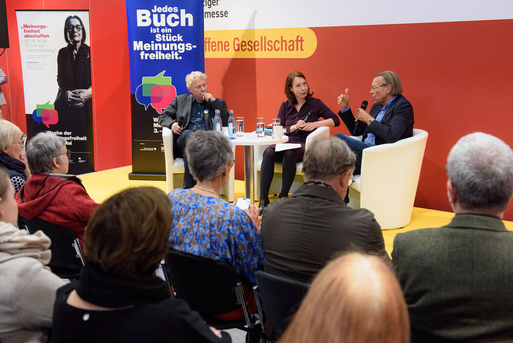 Da die Gesprächsrunde als Vorpremiere der Woche der Meinungsfreiheit gedacht war, ergriff zu Beginn Karin Schmidt-Friderichs, Vorsteherin des Börsenvereins, das Wort, um auf die essentielle Bedeutung von Meinungsfreiheit in der Demokratie hinzuweisen. Meinungsfreiheit setze aber Meinungsbildung voraus – im Diskurs.