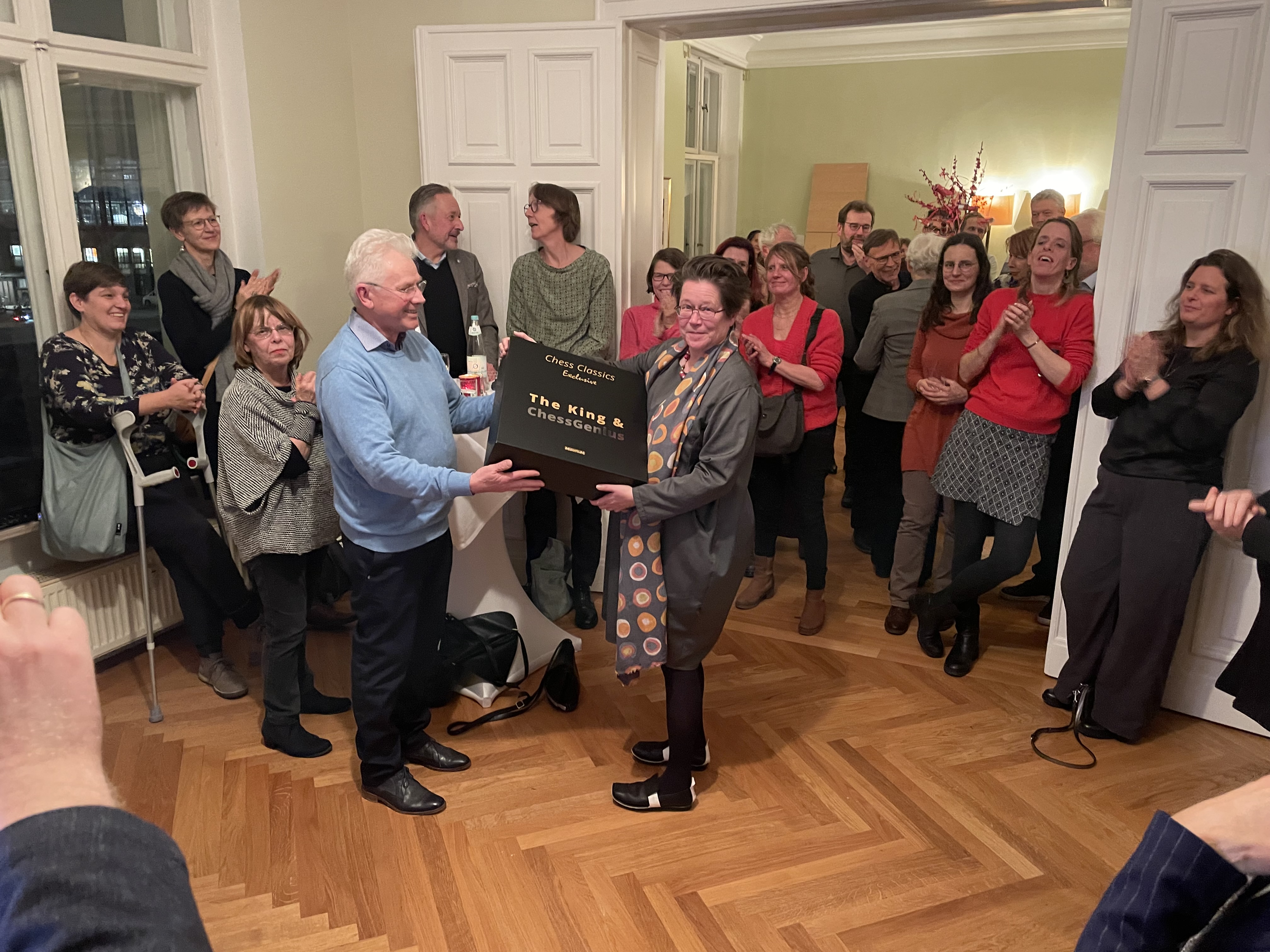 Ein Schachspiel zum Abschied – überreicht von Falko Micklich an Johanna Hahn.