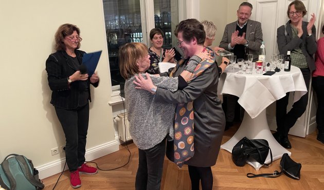 Ruth Klinkenberg, ehemalige Vorsitzende des Landesverbandes, blätterte in ihrer launigen Laudatio einen umfangreichen "Katalog der Eigenschaften" von Johanna Hahn auf, die sich als ideale Voraussetzungen für den Job in der Geschäftsstelle des Landesverbands erwiesen hätten. Klinkenberg lobte Hartnäckigkeit und Ausdauer – "auch bei der Werbung von Mitgliedern", Kollegialität ("Sie weiß, um viel zu erreichen, müssen viele mitmachen"), Optimismus, Geduld, Enthusiasmus, Vermittlungsgeschick und nicht zuletzt "Fakten- und Zahlensicherheit", die womöglich auch der schwäbischen Herkunft zu verdanken sei. (Hahn wurde 1963 in Stuttgart geboren und hat später Germanistik in Tübingen, Wien und München studiert.)