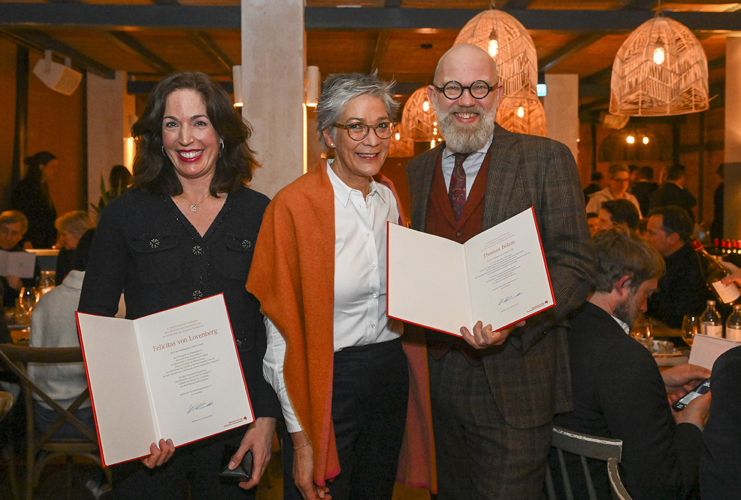 Thomas Böhm und Felicitas von Lovenberg hätten Außergewöhnliches für die Branche und den Verband geleistet, betonte Börsenvereinsvorsteherin Karin Schmidt-Friderichs in ihrer Laudatio.