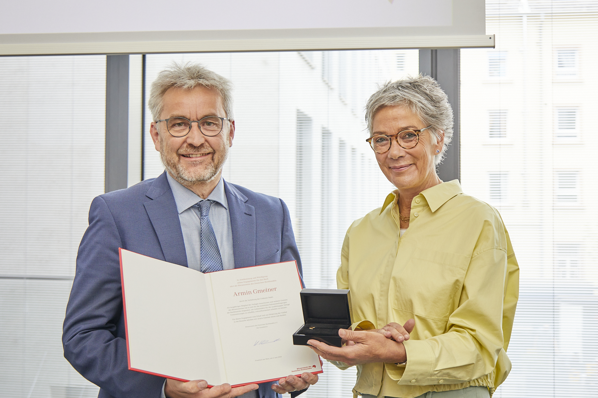 Ehrung des Börsenvereins: eine Goldene Nadel für Verleger Armin Gmeiner
