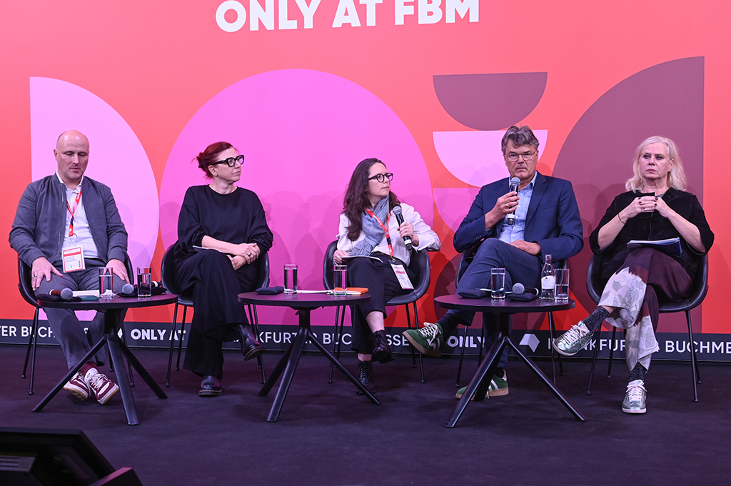"Kotau vor der Tech-Wirtschaft oder Fair Play?" So übertitelte die Frankfurter Buchmesse eine Diskussion zum AI Act mit Sven Lehmann (Bündnis 90/Die Grünen), Nicole Pfister Fetz (European Writers‘ Council), Christian Meyer-Seitz (Bundesministerium der Justiz und für Verbraucherschutz), Sabine Richly (Digital Media Consulting) und Barbara Gessler (Leiterin der Vertretung der Europäischen Kommission in Deutschland).