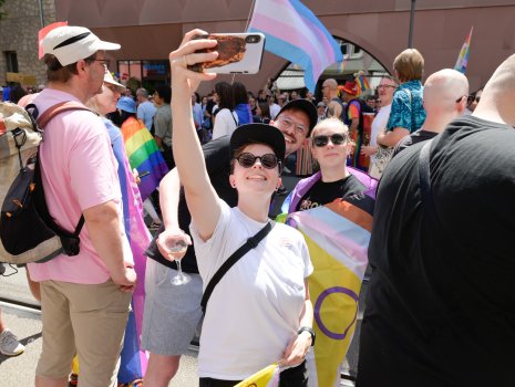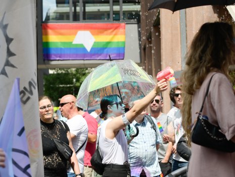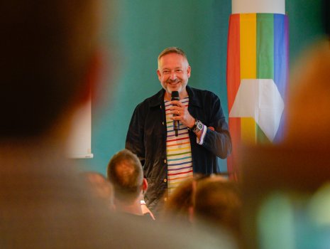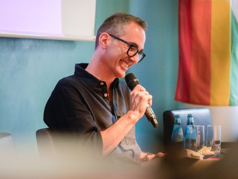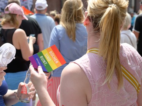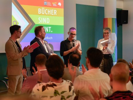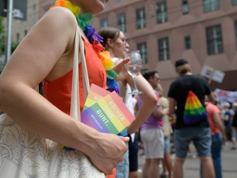 Mit diesem eindringlichen Appell brachte Karin Schmidt-Friderichs auf den Punkt, worum es an diesem Abend ging: um die Sichtbarkeit von Vielfalt und Queerness. Bei einem literarischen "Pride Apéro" diskutierte die Börsenvereinsvorsteherin am Freitag mit Autor Marcello Liscia und dem hessischen Minister Timon Gremmels. Am Samstag feierte die Börsenvereinsgruppe beim Christopher Street Day in Frankfurt mit.