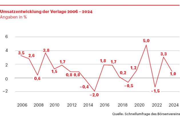 Das vergangene Jahr war für die Branche kein leichtes. Das haben sowohl die Verlage als auch viele Buchhandlungen gemerkt. Wie es bei den Verlagen 2024 wirtschaftlich im Detail aussah, bringt die Schnellumfrage des Börsenvereins an den Tag. 220 Verlage aus 65 Unternehmen haben diesmal mitgemacht. Weil die Teilnehmerbasis von Jahr zu Jahr variiert, ist die Datengrundlage immer eine andere und die Stichprobe nicht repräsentativ. Die Zahlen werden jedoch mit den Vergleichswerten des Vorjahres abgefragt und weisen eine hohe Umsatzabdeckung mit Blick auf die gesamte Branche auf. Deshalb sind sie dennoch aussagekräftig.