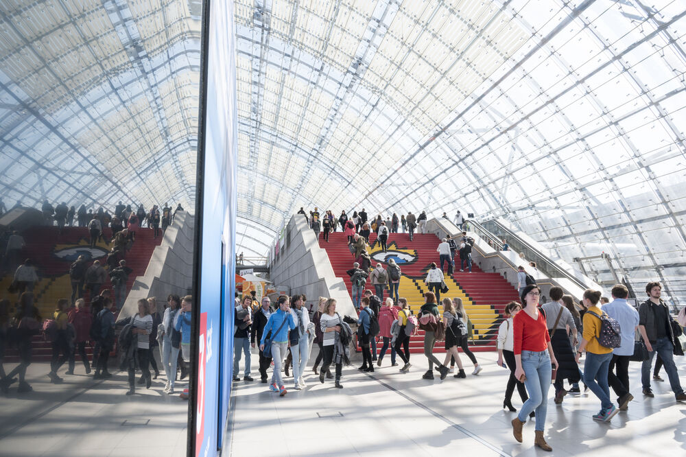 Der JugendCampus UVERSE in Halle 2 ist so etwas wie die Kreativwerkstatt für den Buchmesse-Nachwuchs zwischen zehn und 22 Jahren. Damit diese Vielfalt noch mehr Menschen erreicht, geht die Leipziger Buchmesse in diesem Jahr erstmals on air. Auf einer großen LED-Wand auf dem Leipziger Marktplatz und natürlich im Stream auf der Buchmesse-Website werden Highlights wie die Eröffnung, wichtige Preisverleihungen, ausgewählte Lesungen und Interviews und das Programm ausgewählter Formate wie Forum Offene Gesellschaft übertragen. »Auch in puncto Digitalisierung«, so Oliver Zille, »wissen wir nach drei Jahren Corona-Modus erheblich besser, was essenziell ist, wo man experimentieren kann – und wo vielleicht auch nicht.«