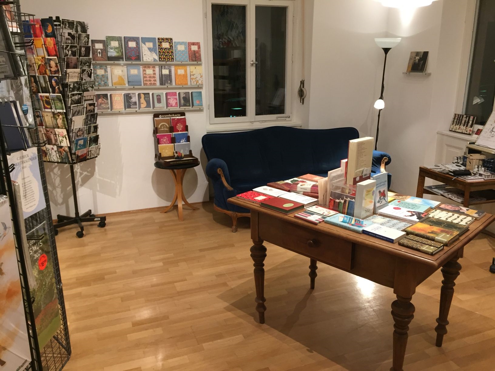 Die Fläche hat sich damit von bisher 180 auf nun 380 Quadratmeter erweitert, die neuen Räume wurden am 26. September eröffnet. "Das erste Obergeschoss war die ehemalige Wohnung der Buchhändlerfamilie Baumann, wo wir jetzt ein einzigartiges Buchhandlungskonzept in unserer Region umgesetzt haben, das den Charme der Räume erhält und zugleich eine Hommage an die engagierten Vorbesitzer darstellt," erzählt Martin Schwab. So gibt es dort "ein Wohnzimmer mit Literatur, Kunstpostkarten, antiquarischen Büchern und Kalendern". Im Kinderzimmer mit Pappbilderbüchern und Non-Books für Kleinkinder ist eine Maltisch-Ecke aufgebaut, auf dem Boden liegt ein Krabbelteppich. Weiter geht es zum Arbeitszimmer, in dem Sigrid und Martin Schwab einen kleinen Arbeitsplatz zur Beratung eingerichtet haben. Angeboten werden hier unter anderem Bürokalender, Postkarten, Notizbücher und passende Non-Books. In der Kunden-Kaffeeküche offerieren die beiden Buchhändler kostenlose Getränke für Kunden, die von dort auf eine rund 30 Quadratmeter große Terrasse schlendern können, "mit mediterranem Flair und Blick auf die Fußgängerzone". In der Diele der Wohnung werden Papeterie und Saisonales präsentiert, das "Kämmerle" widmet sich den Thema Kochen und führt ein Hobby-Zusatz-Sortiment. Schließlich gibt es Kunden-WC mit Wickeltisch. "Die Räume bieten viel Tageslicht, überall laden gemütliche Sitzgelegenheiten – Sessel oder Sofas – zum Schmökern in ruhiger Atmosphäre ein", hebt Schwab hervor. Das Motto sei "Sich wohlfühlen wie Zuhause".