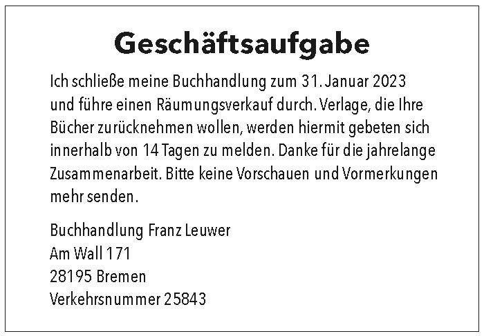 Die Buch- und Kunsthandlung Leuwer wurde 1903 von Franz Leuwer gegründet, 1984 übernahmen Angelika und Klaus Plückebaum das Geschäft.