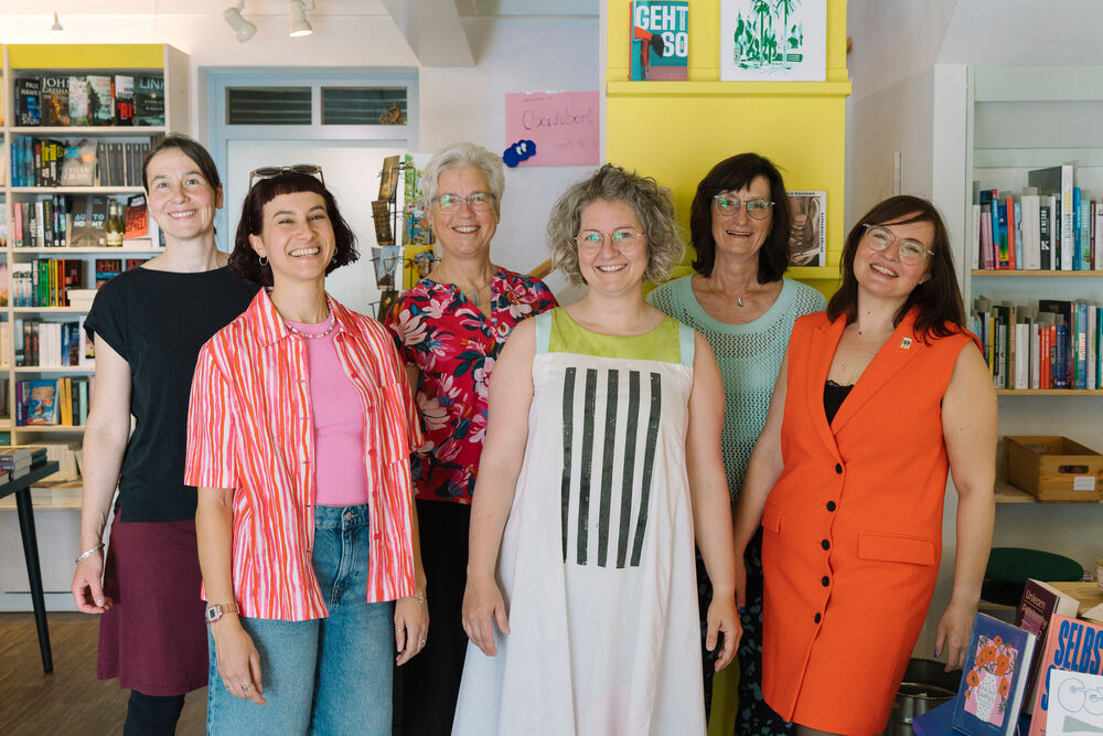 Der kleine Buchladen ist schick, bunt, einladend. "Niedrigschwellig" soll das Angebot sein, wie Hallermann erläutert. Busladungen von Schüler:innen steigen mittags am Bahnhof um, sie sollen sich hier aufhalten können – "ohne Kaufzwang", betont die Buchhändlerin. Im Obergeschoss warten Jugendbücher und Sofas auf sie. Das Logo und das moderne Design hat ein Freund der neuen Inhaberinnen gestaltet, Freundinnen haben die Außenwand mit "Badges" geschmückt, das Team – bestehend aus vier Mitarbeiterinnen, die übernommen wurden, und den beiden Inhaberinnen – hat gemeinsam gestrichen. "Das war coole Gemeinschaftsarbeit", blickt Hallermann zurück. Teamwork wird von Stunde null an groß geschrieben. "Wir müssen nicht Chefinnen spielen", erklärt Hallermann. Darum trägt die Buchhandlung auch nicht ihren Namen. Bei der Buchauswahl reden alle mit – und weil niemand "vom Fach" ist, gibt es auch keine Berührungsängste bei Themen wie Warenwirtschaft, Abrechnung, Schulbuchgeschäft.