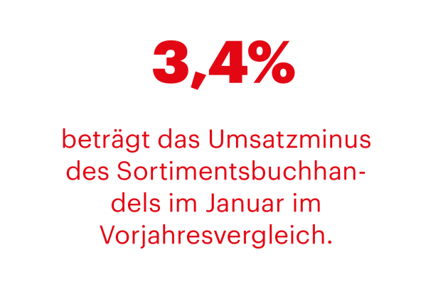 Im Januar konnte der Buchhandel nicht an seine Vorjahresumsätze anknüpfen. Sowohl der Sortimentsbuchhandel als auch alle Vertriebswege zusammengenommen schlossen im Minus.