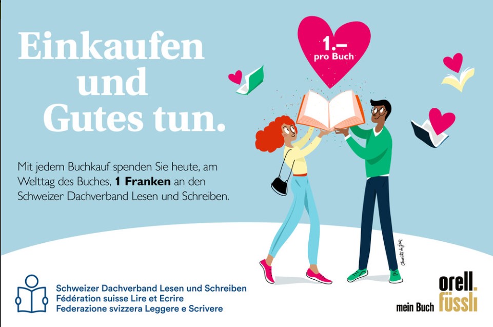 Für jedes in den Filialen und online verkaufte Buch spendet Orell Füssli am 23. April einen Franken an den Schweizer Dachverband Lesen und Schreiben.
