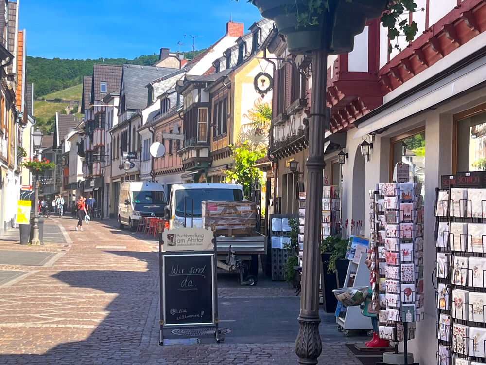 Aus drei Monaten wurden zwei Jahre, bis auch die Weinhandlung renoviert werden musste – die Nässe war in der Flut in den Keller eingedrungen und hatte Schäden hinterlassen. Was tun? Mittlerweile waren in Dreschers altem Viertel einige Gebäude wiederhergestellt, wenn auch nicht sein ursprüngliches Ladenlokal. Die beiden Händler hörten sich um – und waren erst einmal schockiert: "Viele Flächen waren plötzlich 60 bis 100 Prozent teurer. Das hätte sich für keinen von uns gerechnet." Schließlich fanden sie ein geeignetes Ladenlokal direkt neben der alten Buchhandlung. "Das Haus hatte ein junges Ehepaar zwei Wochen vor der Flut gekauft, um ein Restaurant zu eröffnen." Dies wurde aber nach der nötigen Renovierung des Hauses erst einmal aufgeschoben, Drescher und Kohlen wurden Mieter. "Es war eine wilde Mischung, Bücher und Wein auf 60 Quadratmetern, aber es war auch lustig." Leider sei bei jedem Umzug ein Teil des Umsatzes weggebrochen: "Man kann es Kunden nur schwer vermitteln, dass man schon wieder woanders seinen Laden hat. Zudem sind die Menschen nach der Flut generell weniger in die Innenstadt gekommen. Das Hochwasser hat den Strukturwandel, der zum Sterben der Innenstädte führt, sicher beschleunigt", meint Drescher.