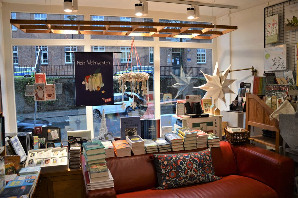 Durchwachsen ist die Klimabilanz bei der Mobilität des Teams: Während die drei Mitarbeiterinnen in der Regel mit dem Rad zur Arbeit kommen, ist Svenja Esch 20 Kilometer mit dem Auto unterwegs: »Wir wollen schon lange in die Nähe der Buchhandlung ziehen«, erklärt sie. Vielleicht setzt sie dieses Ziel durch die Klimaschutzoffensive schneller um. Einige Punkte aus der Energieberatung packt sie direkt an: »Die schlecht isolierten Fenster von 1986 sind das Hauptproblem«, so Esch. Olaf und Claudia Güldner informieren sie über die verschiedenen Fördermöglichkeiten für den Einbau neuer Scheiben. Damit hat die Buchhändlerin jetzt eine Grundlage, um das Gespräch mit dem Vermieter zu suchen. Bei den zugebauten Heizkörpern will sie selbst umplanen: »Das ist eine Sache der Schaufenstergestaltung, die wir ändern werden.«
