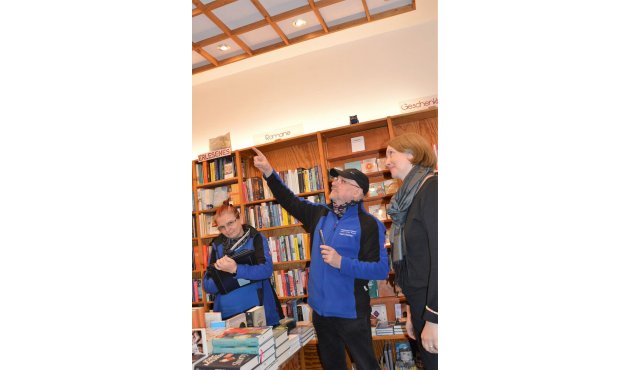 Grüner Buchhandel in Bremen: Die Buchhandlung Lesumer Lesezeit will klimaneutral werden – und wird dabei vom HDE unterstützt. Schon ein erster Ladenrundgang mit Experten legte jetzt Wärmeverluste und Spareffekte offen.