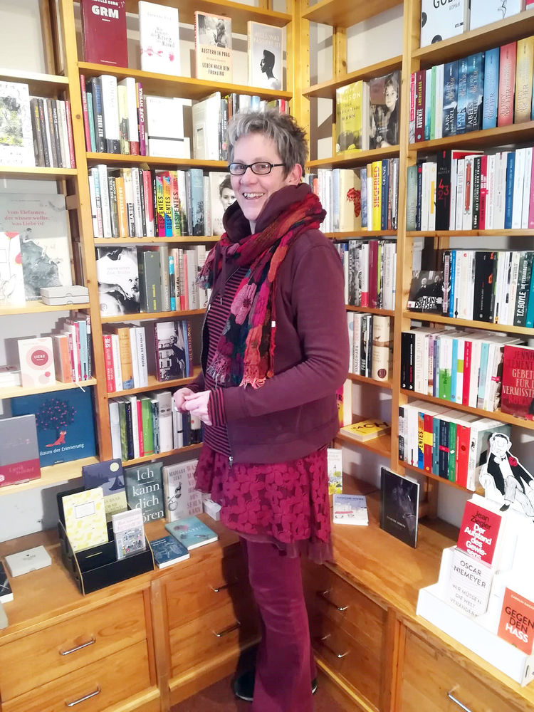 Buchhändlerin Bettina Roetzer in ihrem Laden in München-Giesing