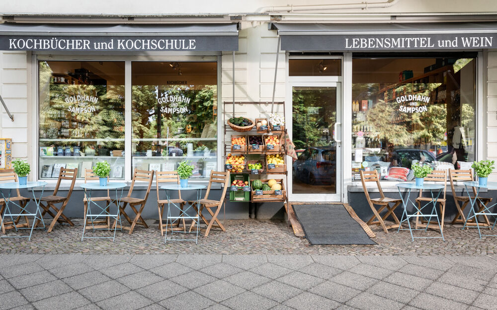 Lebensmittel, Wein, Kochkurse: Das alles gibt es bei Goldhahn und Sampson in Berlin. An den beiden Standorten kann man auf 30 (Prenzlauer Berg) und 100 Quadratmetern (Charlottenburg) außerdem in inspirierenden Kochbüchern stöbern – in eigenen Abteilungen, die alle Sinne ansprechen. Im Oktober kommt ein dritter Ableger in der historischen Markhalle Neun in Berlin-Kreuzberg hinzu: Die 50 Quadratmeter dort sind, anders als in den anderen zwei Läden, überwiegend für Kochbücher reserviert. Expansion in der Pandemie? Das kann man sich nur leisten, wenn die Zahlen stimmen.