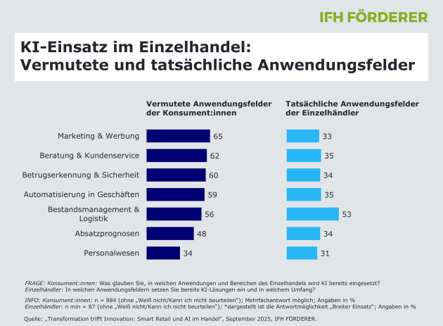 Spannende Einblicke in das Thema Künstliche Intelligenz liefert eine neue Studie des Kölner Instituts für Handelsforschung (IFH): Die Kund:innen vermuten, dass KI im Einzelhandel längst eine wichtige Rolle spielt. Doch das ist vielfach gar nicht der Fall.