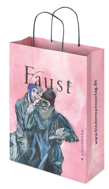 Jede Buchhandlung könne kostenlos eine Verkaufseinheit à 50 Tüten direkt beim Verlag (bestellung@kindermannverlag.de), bei Prolit oder dem zuständigen Vertreter bestellen (Faust-Motiv: Bestellnr. 95553, Gutenberg-Motiv: 95578), teilen die Berliner mit.
