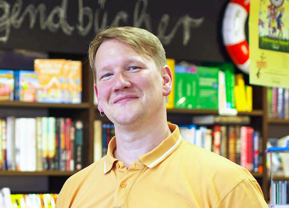 Buchhändler Daniel Hagemann freut sich über die 18-Jährigen, die der KulturPass zum ersten Mal in seine Läden schickt – und findet auch die technische Abwicklung gar nicht so kompliziert.